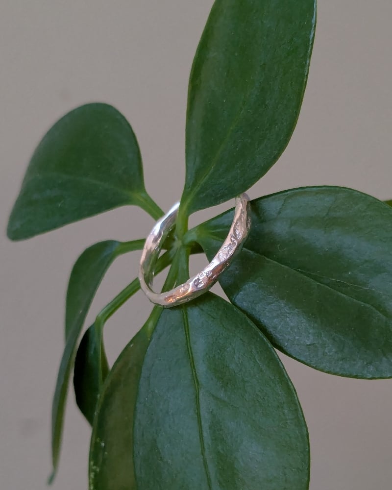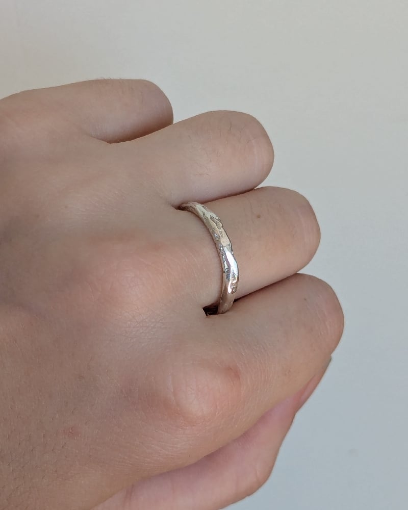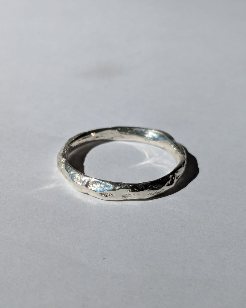 This ring is handcrafted in solid sterling silver using the ancient sand casting technique of refining and pouring molten silver into a mold made of sand.