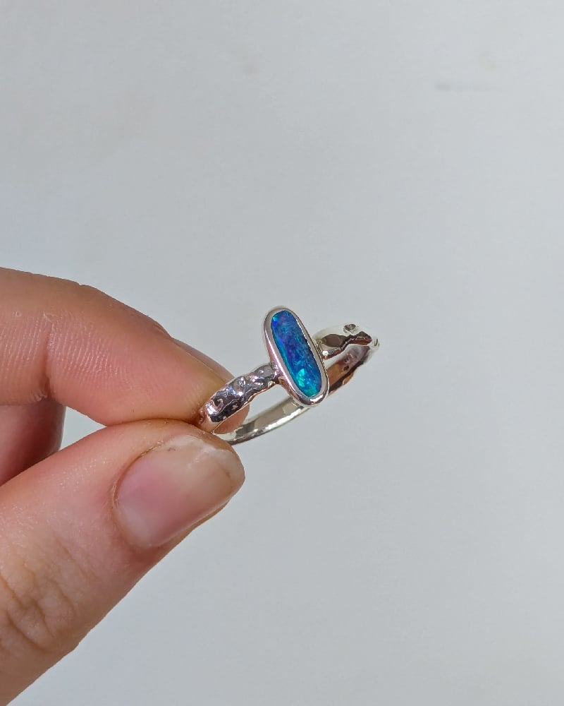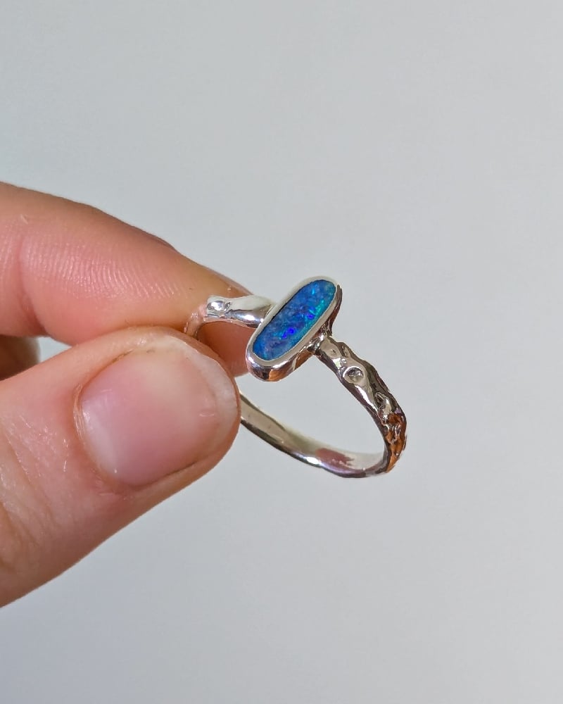This ring is handcrafted in solid sterling silver, featuring a solid Australian boulder opal.