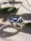 The Unda ring is handcrafted in solid sterling silver, featuring two blue sapphires.